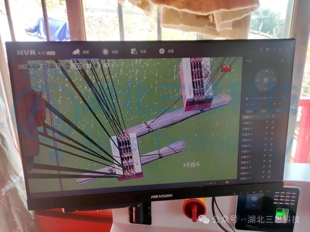 現(xiàn)場(chǎng)多臺(tái)槍機(jī)分別安裝在卷?yè)P(yáng)平臺(tái)附近,監(jiān)視卷?yè)P(yáng)的工作情況;兩個(gè)塔頂 各安裝多個(gè)球形攝像機(jī)用于鳥瞰纜索吊區(qū)域施工情況。