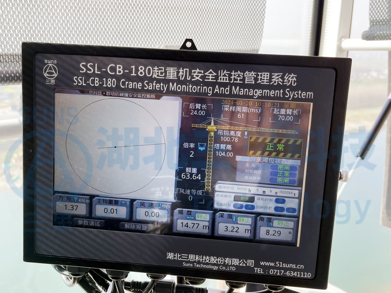 主機(jī)采用10英寸顯示屏,能實(shí)時(shí)顯示工地現(xiàn)場塔機(jī)運(yùn)行狀況,通過無線網(wǎng)絡(luò)把各種傳感器采集的參數(shù)實(shí)時(shí)上傳到智慧工地監(jiān)管平臺,實(shí)現(xiàn)系統(tǒng)監(jiān)管。