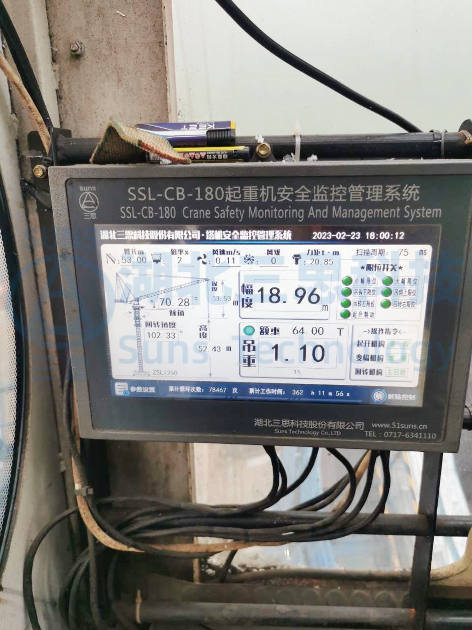 塔吊安全監(jiān)控管理系統(tǒng)主要針對塔機(jī)安全監(jiān)控系統(tǒng)、塔機(jī)防碰撞和信息化調(diào)度管理而作,使用的是湖北三思科技自主研發(fā)的SSL-CB型塔吊安全監(jiān)控管理系統(tǒng)。