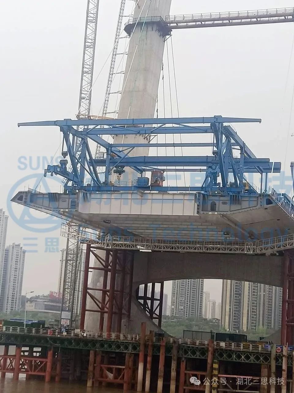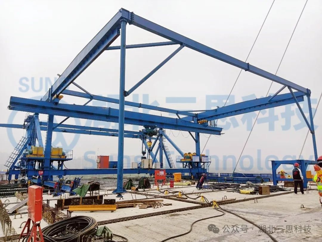 湖北三思科技此次參與的是一臺起重能力達(dá)900T的運架一體機,設(shè)備位于湖南某橋梁建設(shè)現(xiàn)場。
